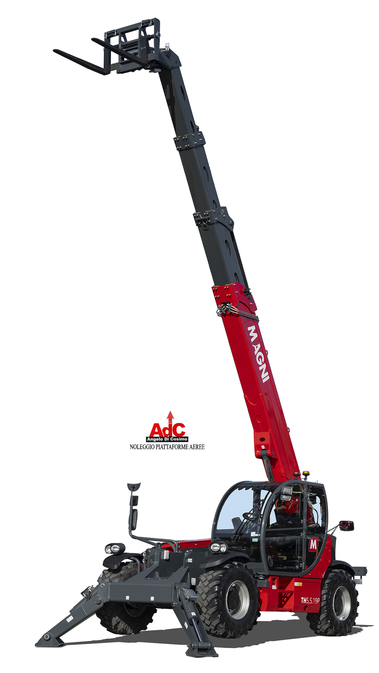 In particolare Il modello TH 5,5.19 P mostrato in foto è un sollevatore telescopico fisso adatto ai cantieri esigenti dell’industria leggera. Motorizzato Deutz 74,4 kW, può raggiungere in tutta sicurezza i 18,80 m di altezza, su terreni accidentati grazie al livellamento automatico, che agisce sia sulle ruote che sugli stabilizzatori, ed alle 4 ruote motrici.